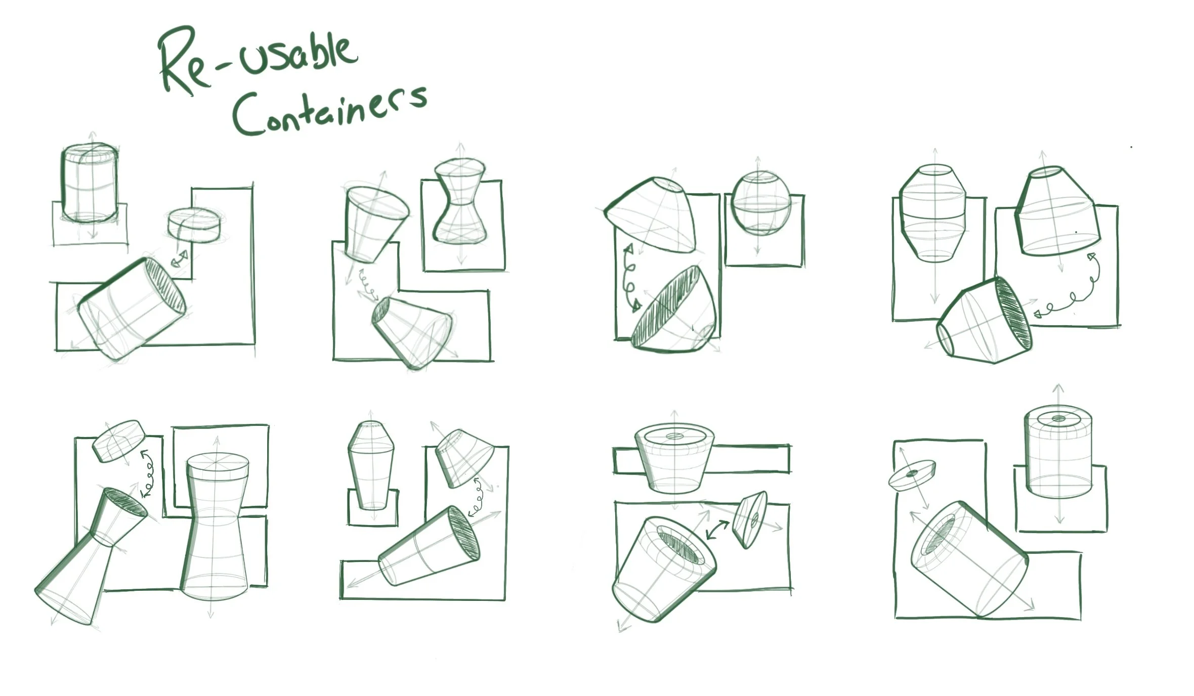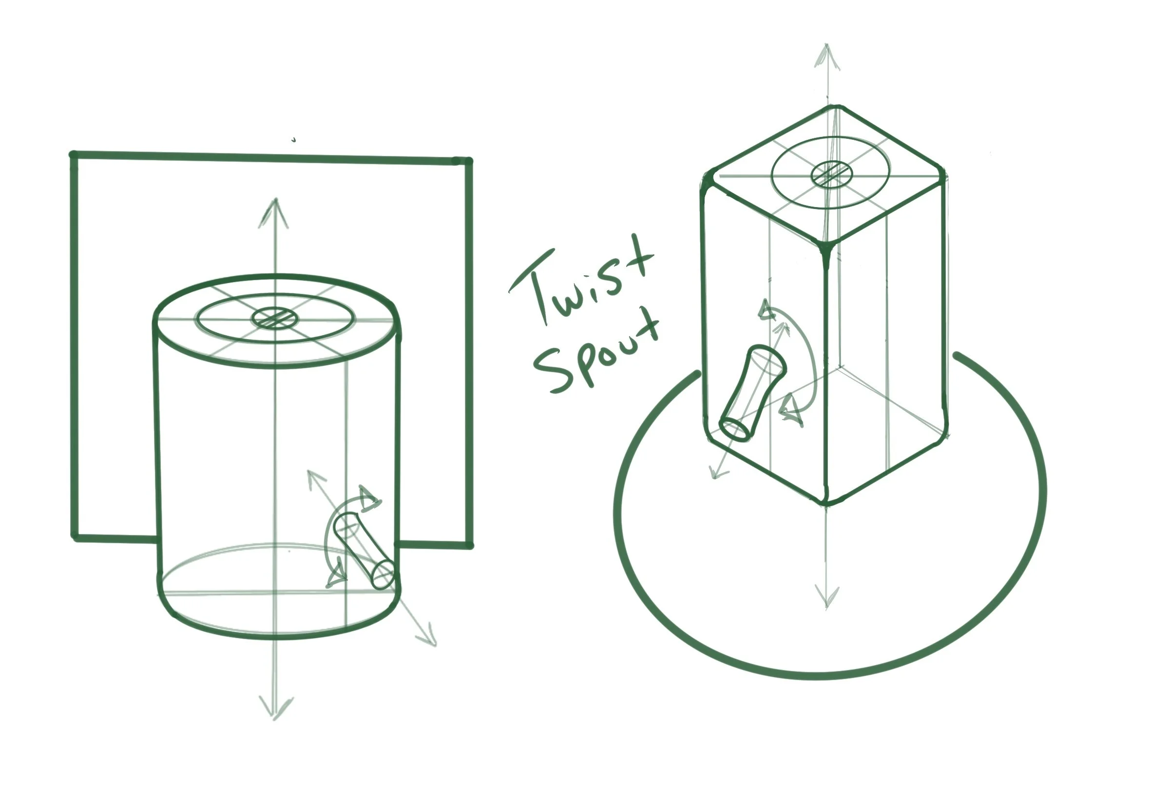 For the first iteration, the form of the dispenser and the container was one of the most important aspects. They needed to encourage interaction from potential users, and the containers needed to be easily usable and blend into a user’s home.